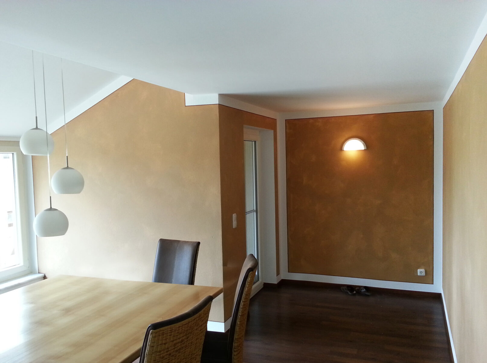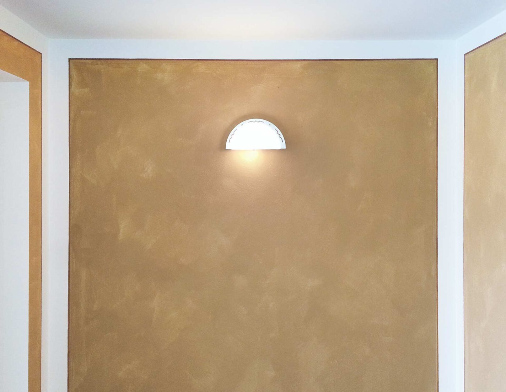 Die Lasurtechnik auf Silikatbasis lässt leicht changierende Wandflächen entstehen, deren Oberflächen zu jeder Tageszeit – je nach Lichteinfall – ein neues Erscheinungsbild hervorbringen.